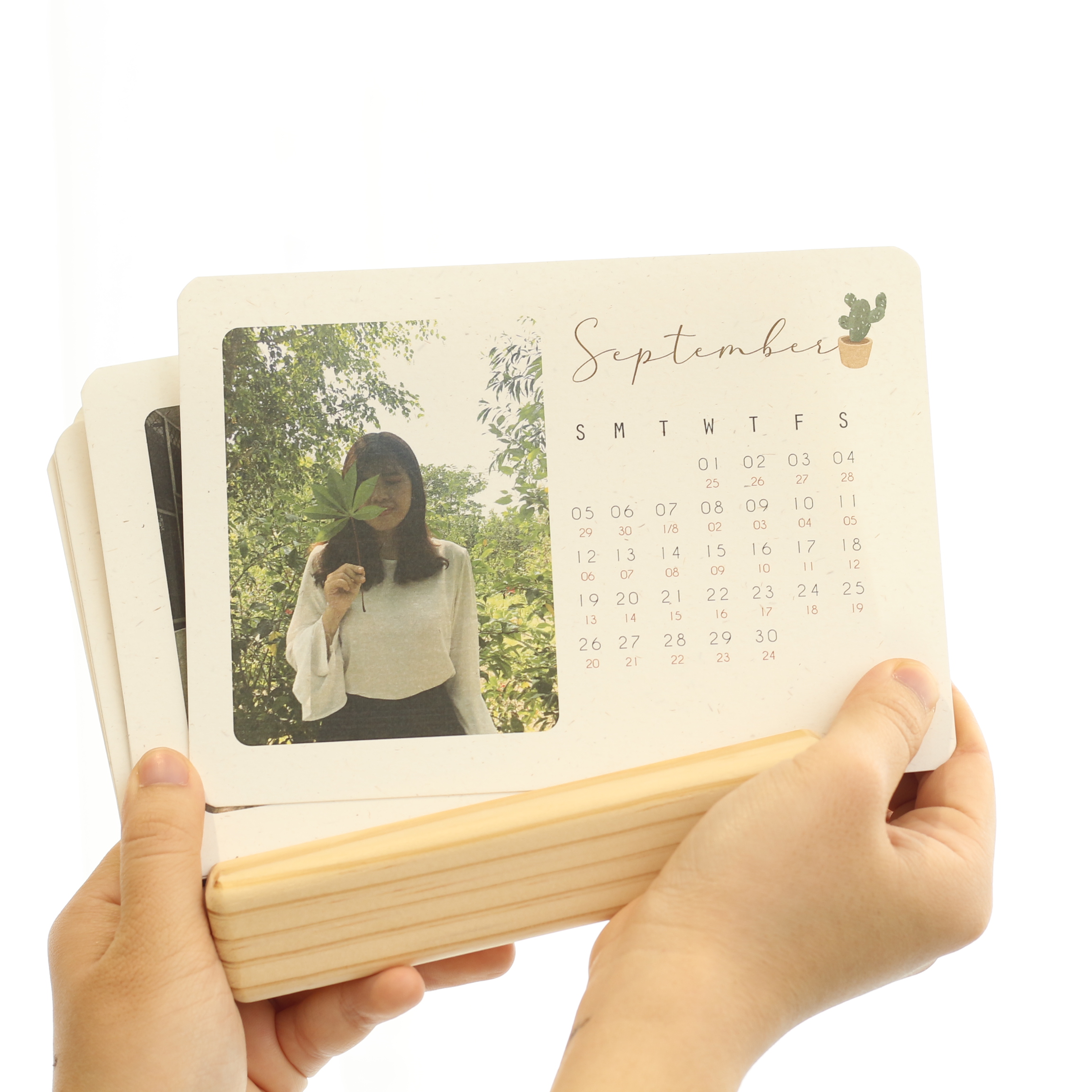 Khác với 2 năm trước, năm nay lịch bàn in theo yêu cầu sẽ là đế gỗ thông, các tờ lịch được in hình của khách hàng gửi theo kích thước nhỏ gọn hơn, dễ dàng mang theo bên mình.