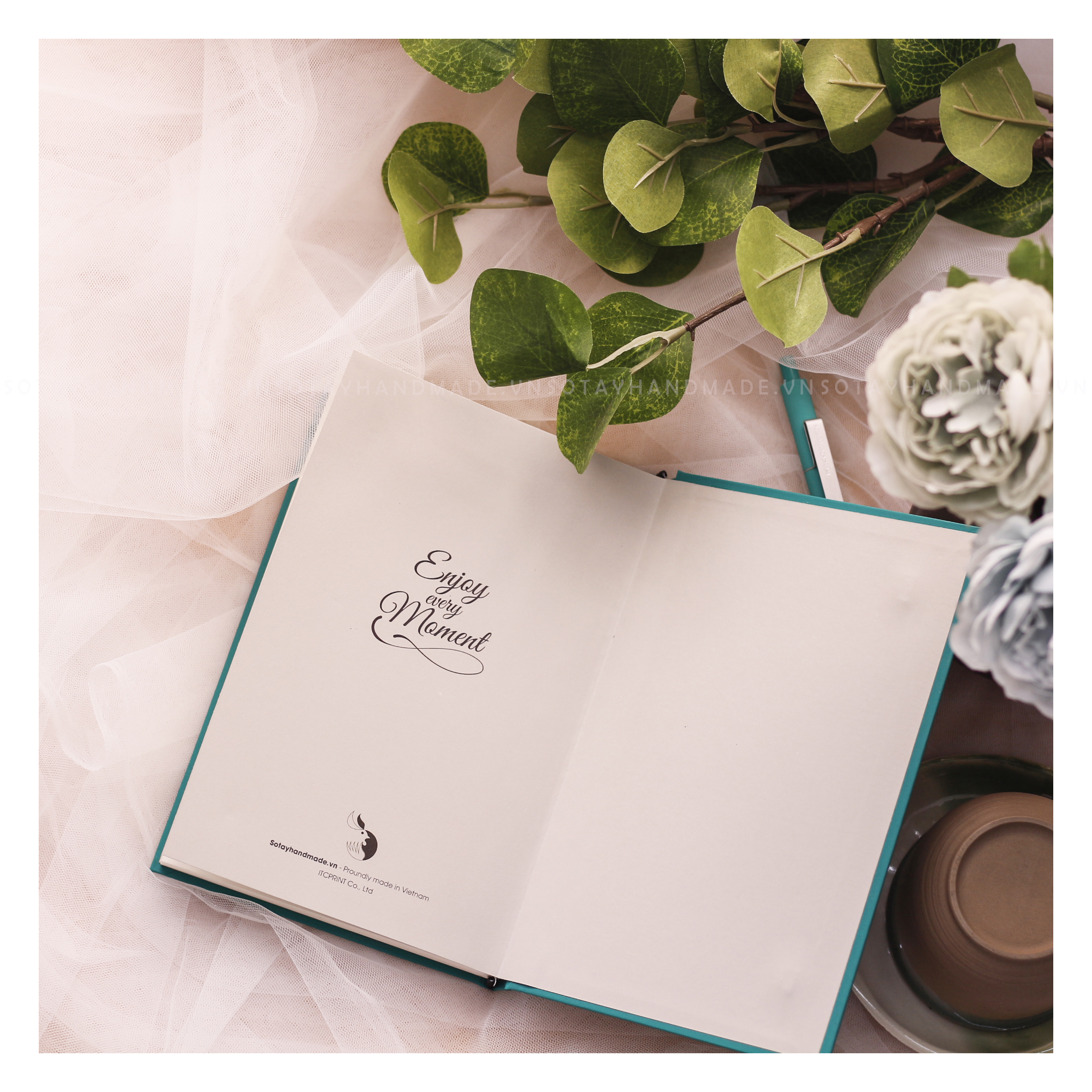 - Bìa gác cuối: giấy mỹ thuật xám sáng, in kèm câu typo “ Enjoy every moment”.