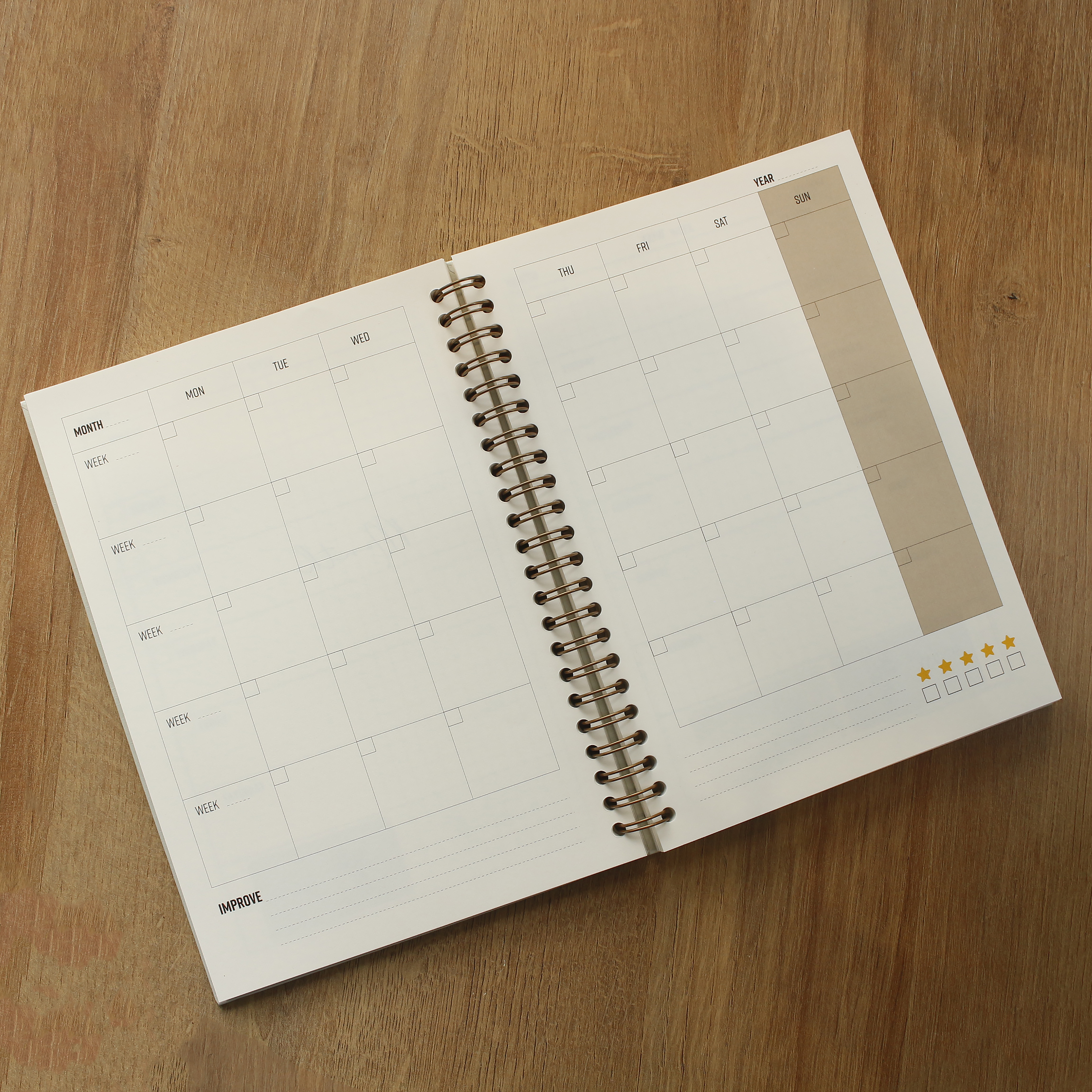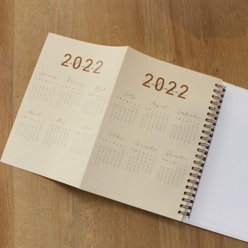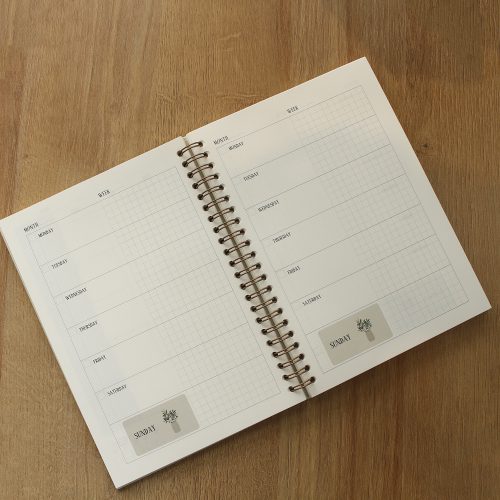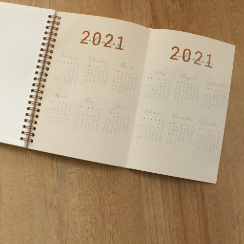 Sổ planner với 4 màu pantone năm 2021, lò xo vàng đồng, ép kim bìa màu vàng đồng. Thiết kế planner hoàn toàn khác, mang đến sự chủ động hoàn toàn cho người dùng.