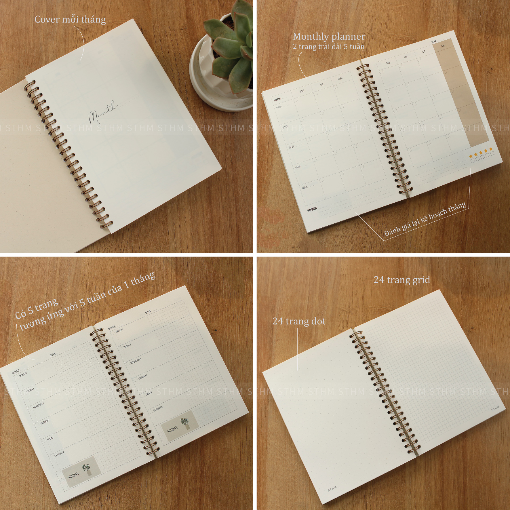 + Trang 4-5: Kế hoạch tháng, 2 trang trải dài 5 tuần – MONTHLY